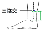 右図「三陰交」 (内踝の直上指4本、脛骨の後縁)