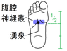 中国では足の中心線で、指の付け根から踵までの長さの指の付け根から1/3のところにとりますが、ここでは少し上のくぼんだところとします。指圧するときは一番反応のある箇所を選んでください。