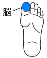 右図「胃、十二指腸ゾーン」(足裏第一中足骨の基部)